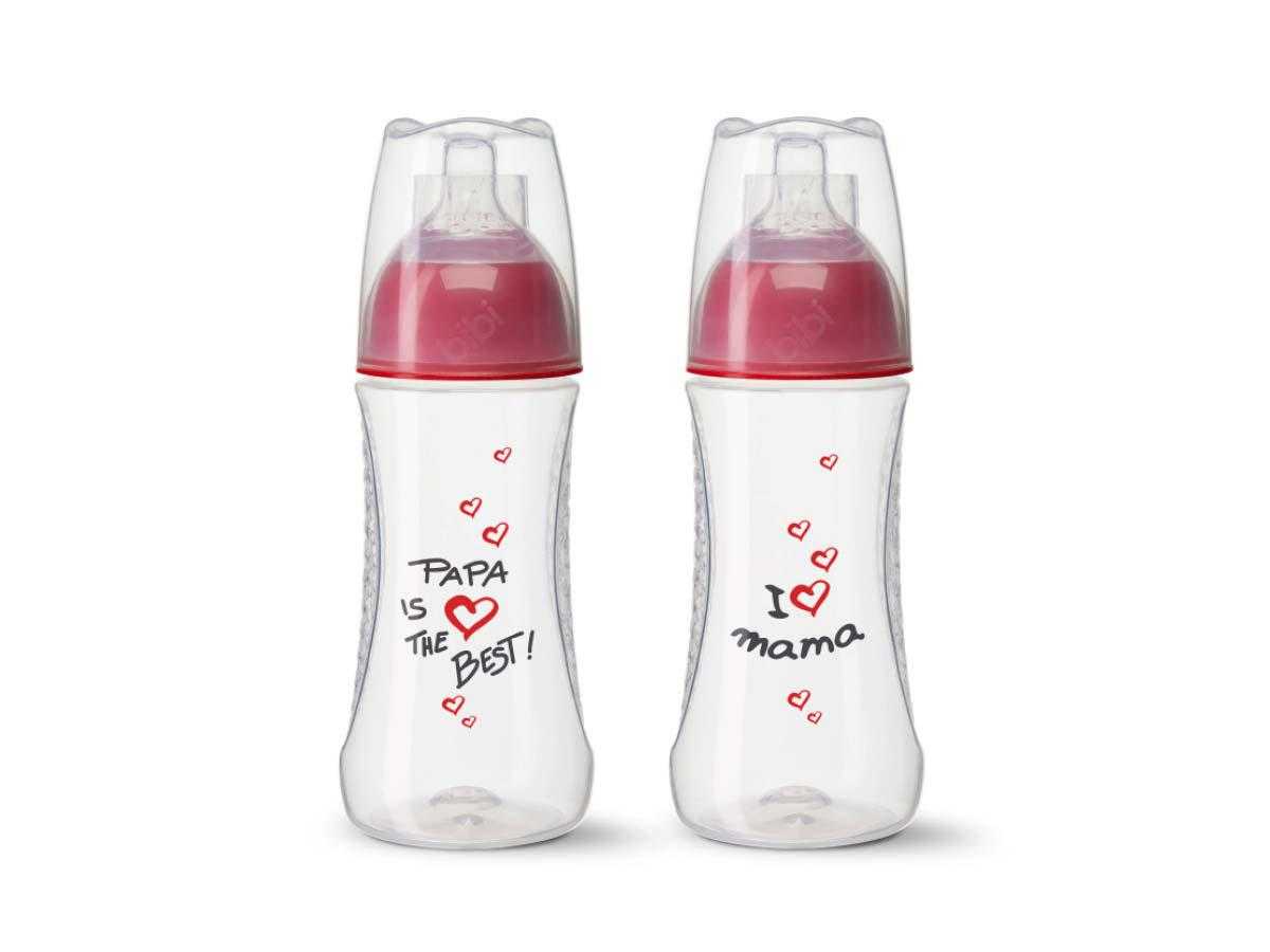Производятся либо из стекла, либо из полипропилена. Соска из силикона снабжена клапаном. Объем бутылочки либо 120 мл, либо 240 мл.
