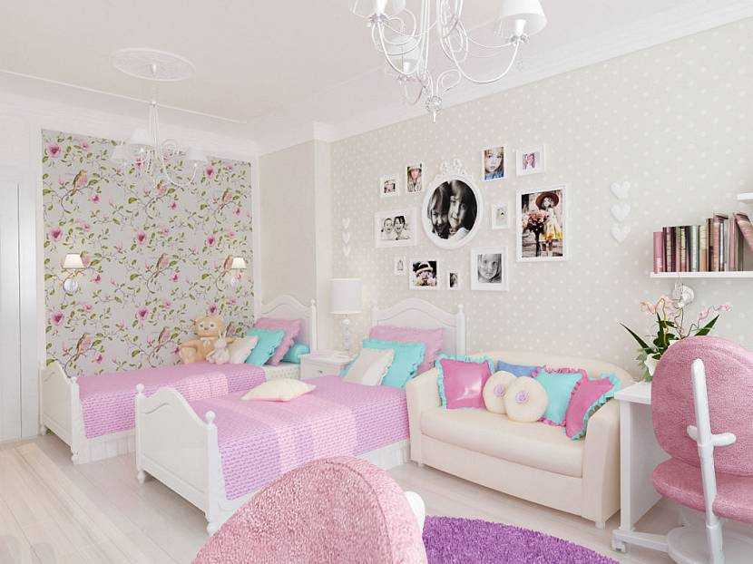 Для девочек наиболее целесообразны розовый, красный, малиновый, персиковый, серый, бежевый и белый. Им обязательно понравится стиль прованс, наполненный пастельными оттенками, цветами и растительными композициями, старинными вещами.