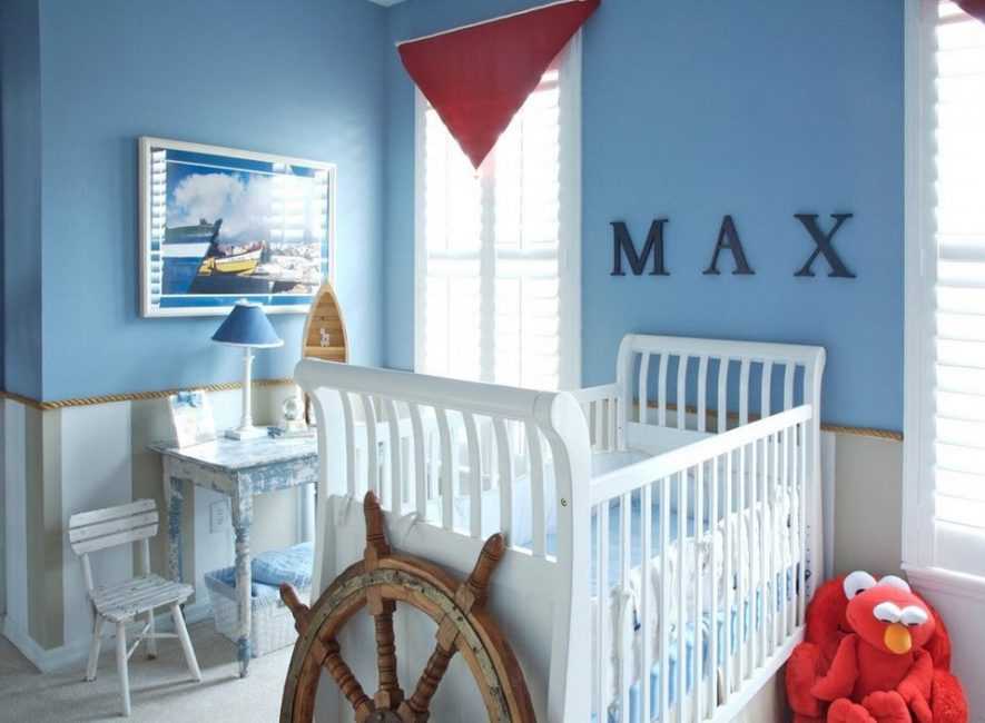 Один из наиболее популярных стилей для мальчиков – морской. Отважные путешественники или капитаны полюбят детскую, наполненную якорями, штурвалами, кораблями, парусниками, картами. Цветовыми решениями станут белый, голубой, синий.