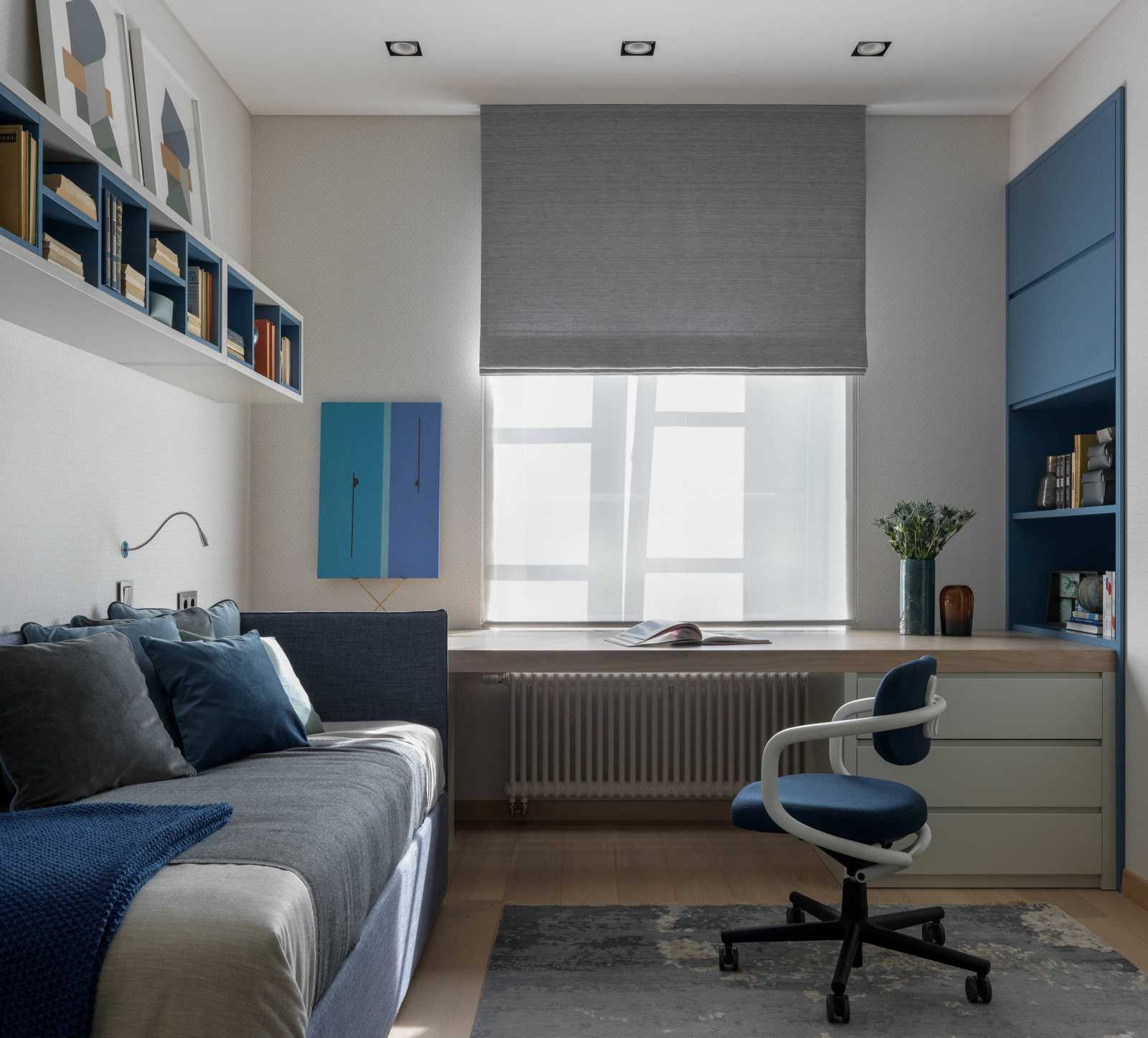 Для школьника нужно много свободного пространства в комнате. В таком помещении обязательно должна быть не только спальная зона, но и рабочее место.