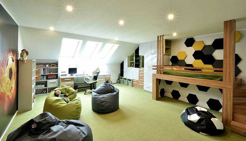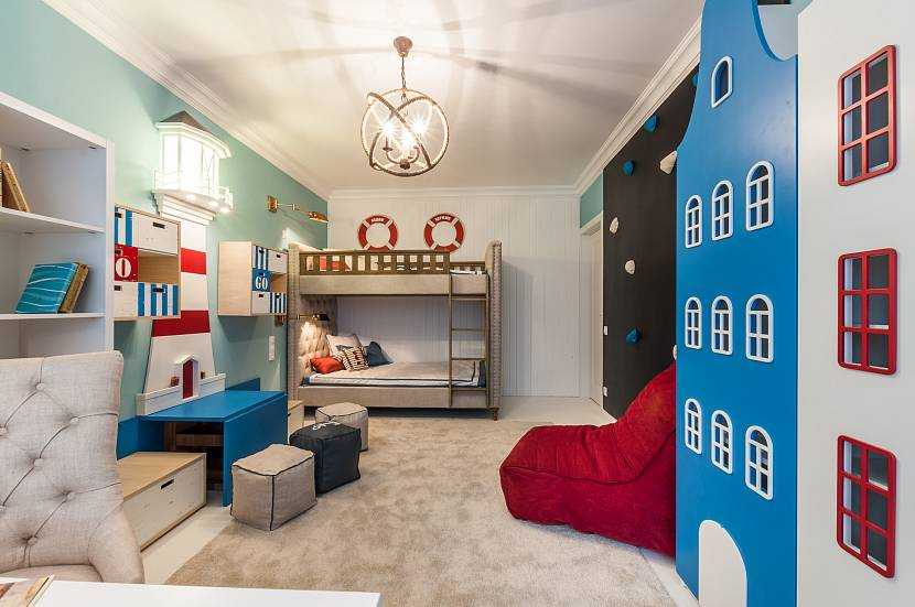 - Разный уровень пола. Для одного из детей можно обустроить пространство на подиуме, а при наличии высоких потолков — обустроить «чердак».