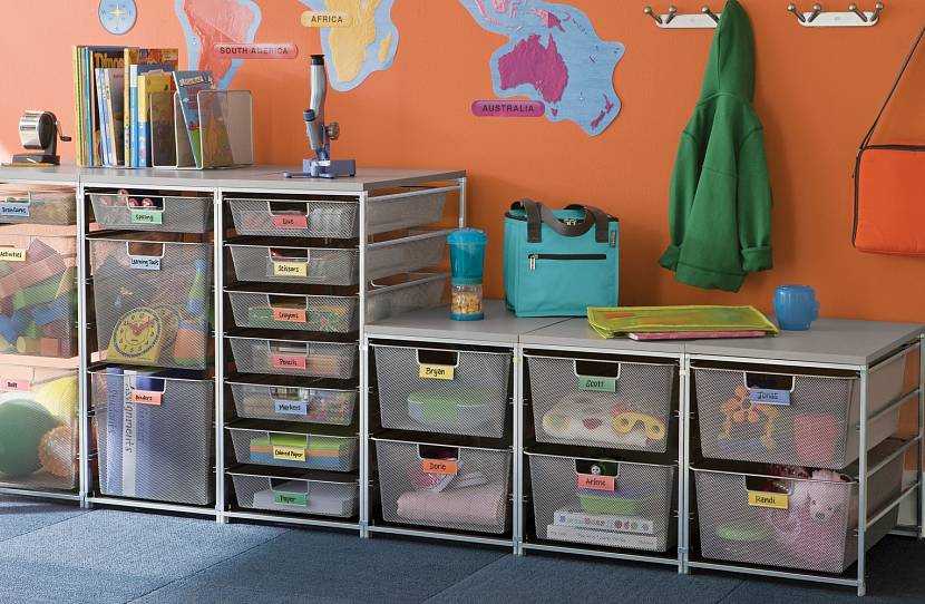 - Открытые стеллажи и шкафы. Выполняют не только роль перегородки, но и мест хранения игрушек и книг.