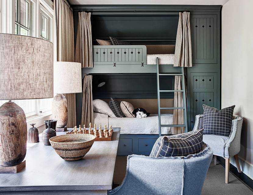 Если позволяет высота потолков, используют двухуровневые конструкции или трёхэтажные кровати