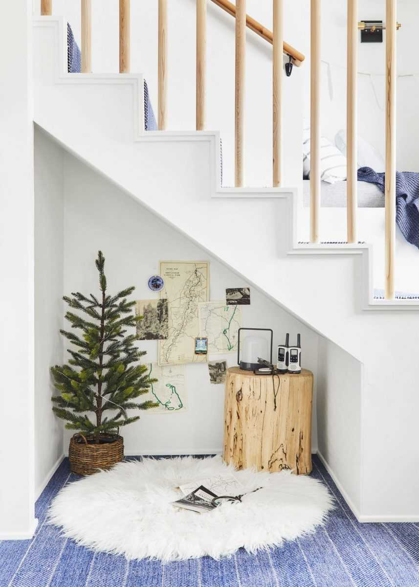 Неприглядная нижняя перегородка переоборудована под столик и стала эффектным элементом интерьера.