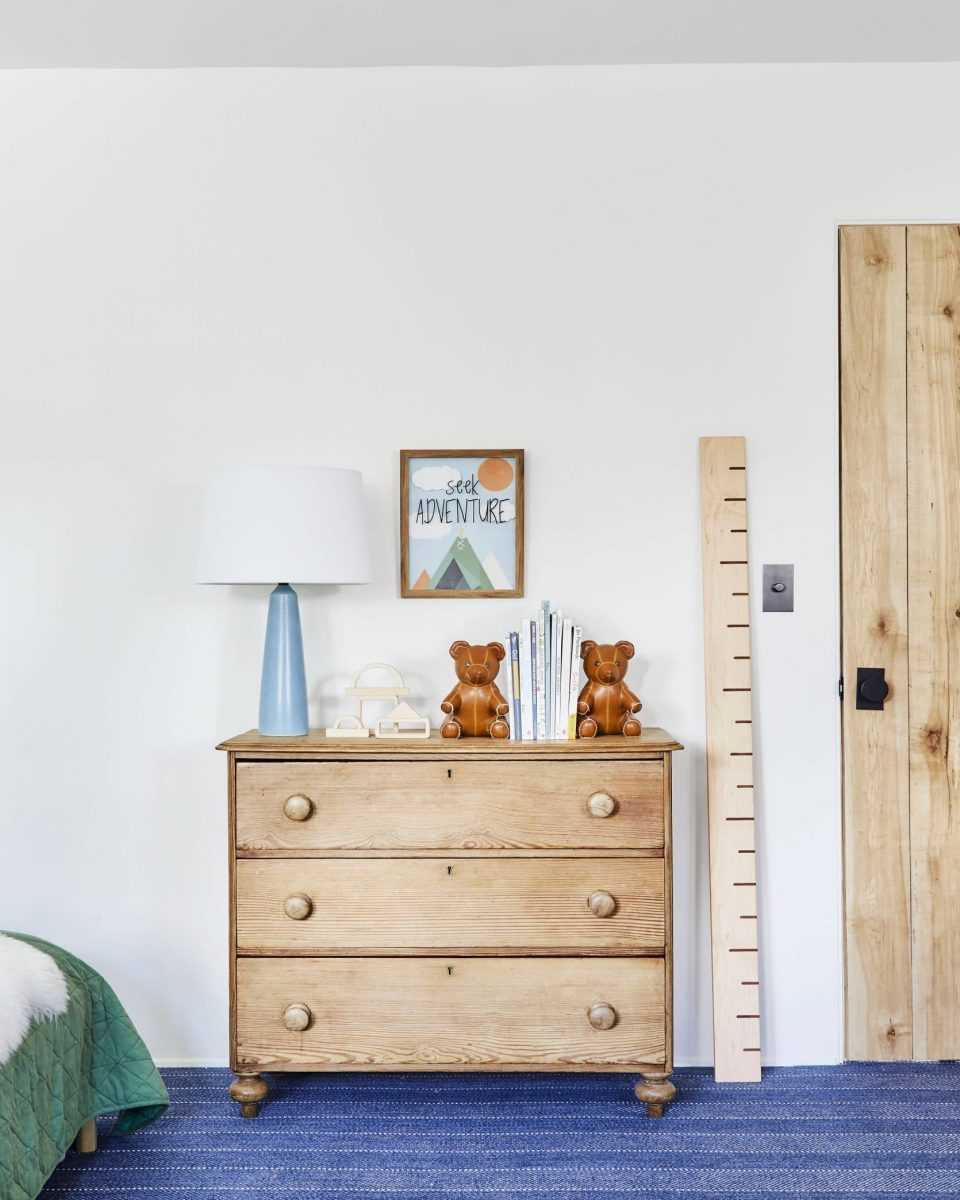 Материал – важный момент. Предпочтительнее натуральное сырье, экологически безопасное. Каждая порода дерева отличается своими характеристиками. Можно выбирать среди природных массивов деревьев или ДСП, МДФ. Для разнообразия разбавьте убранство пластиковыми крепкими стульчиками или комодами для игрушек. Они просты в уходе и легко транспортируются.