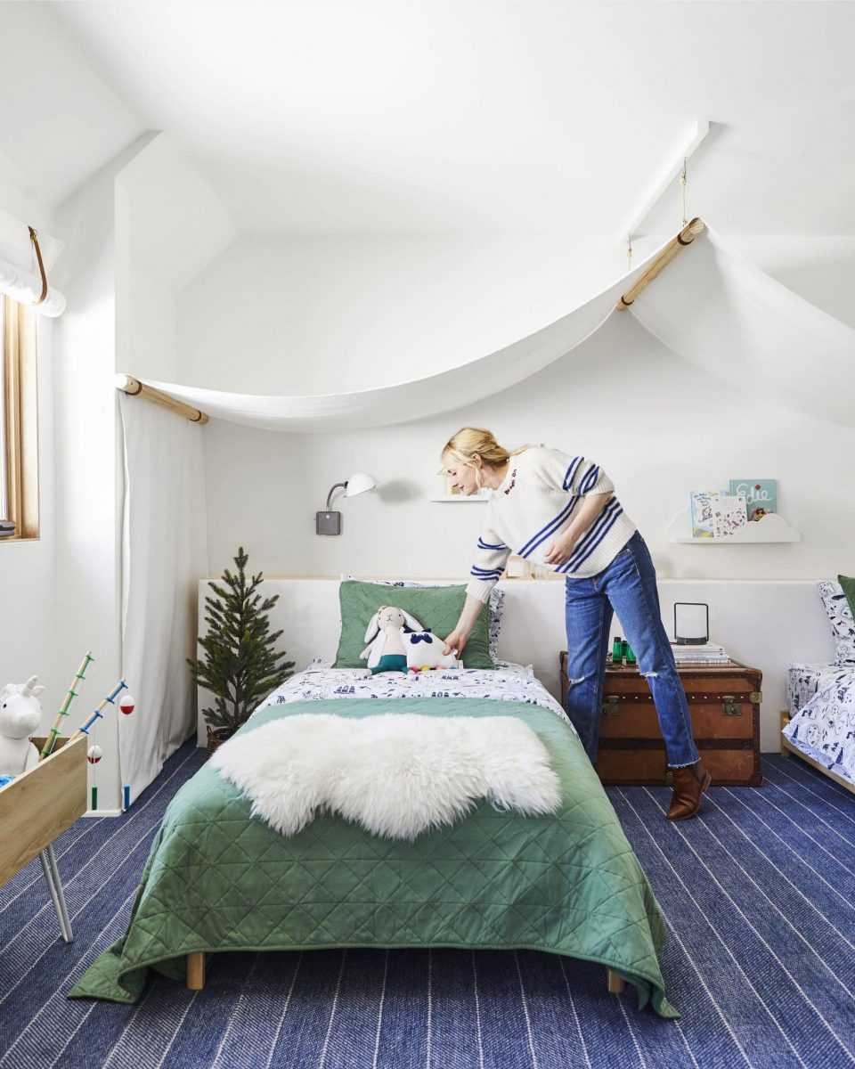 Особое внимание надо уделить организации спального места. Его стоит снабдить балдахином или пологом