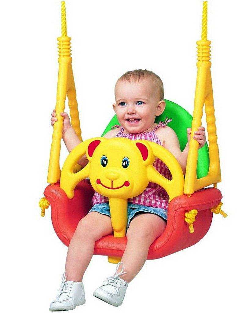 Если малыш здоров, использовать игровое оборудование для раскачивания можно с момента, когда младенцу исполнится один месяц. По мере роста ребенка будет меняться модель качелей: