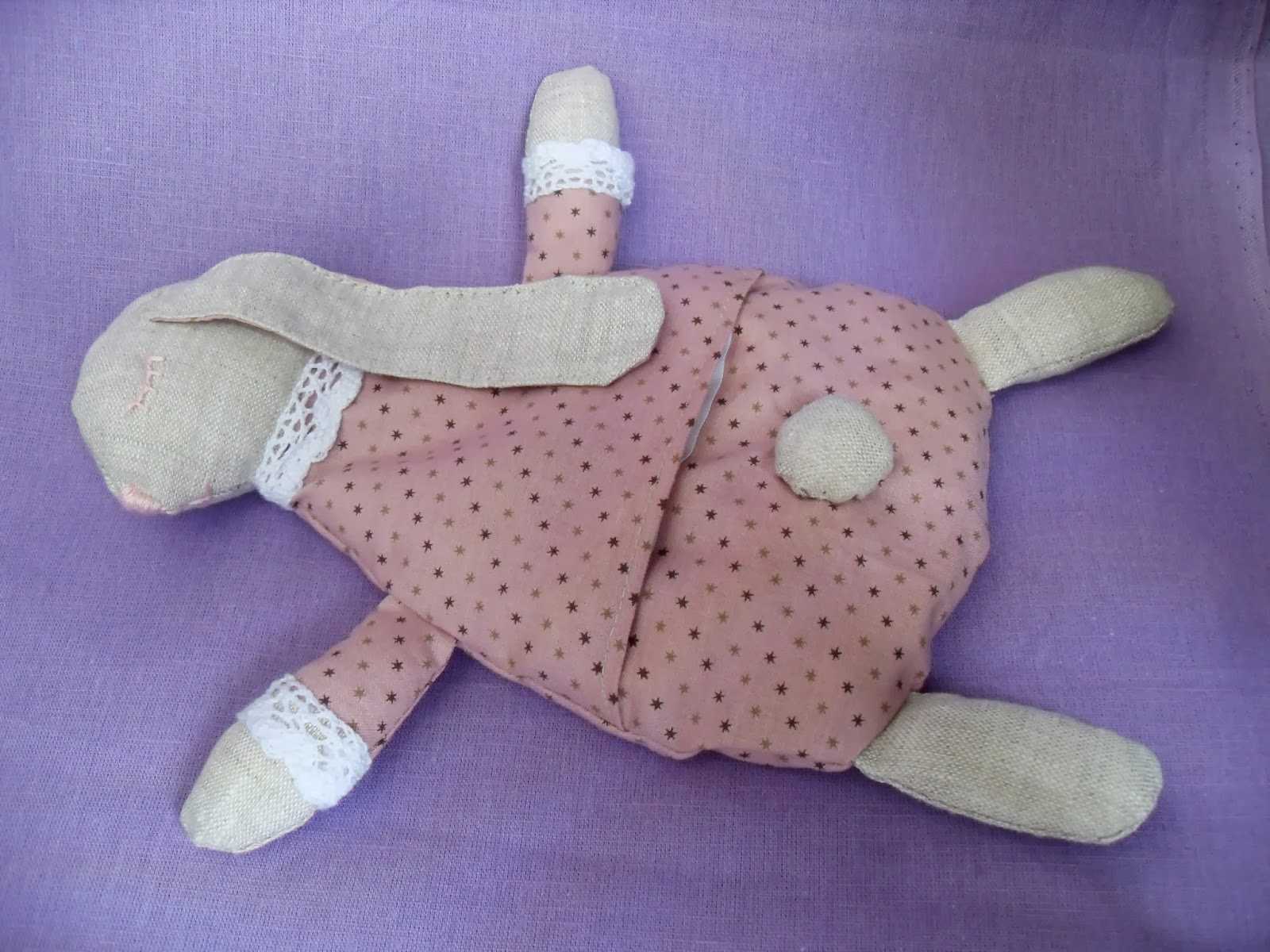 Изготовление игрушки в форме зайчика начинается с построения выкройки и подготовки материалов для верха изделия и наполнения. Прежде всего это касается вишневых косточек. Перед набивкой в игрушку их нужно хорошо промыть, прокипятить в воде с небольшим количеством уксуса и тщательно просушить.