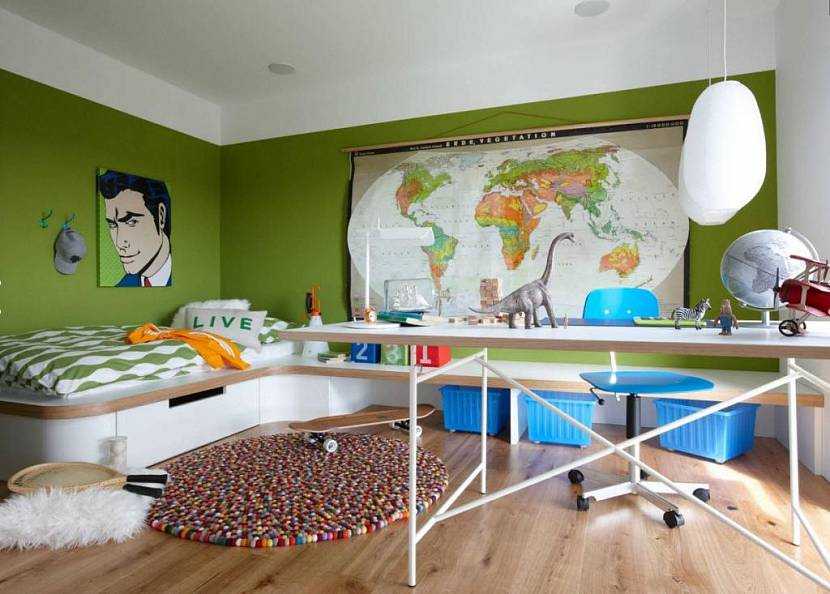 Оптимальный вариант для оформления комнаты школьника: нейтральный рисунок, который поможет улучшить знания географииИсточник autogear.ru