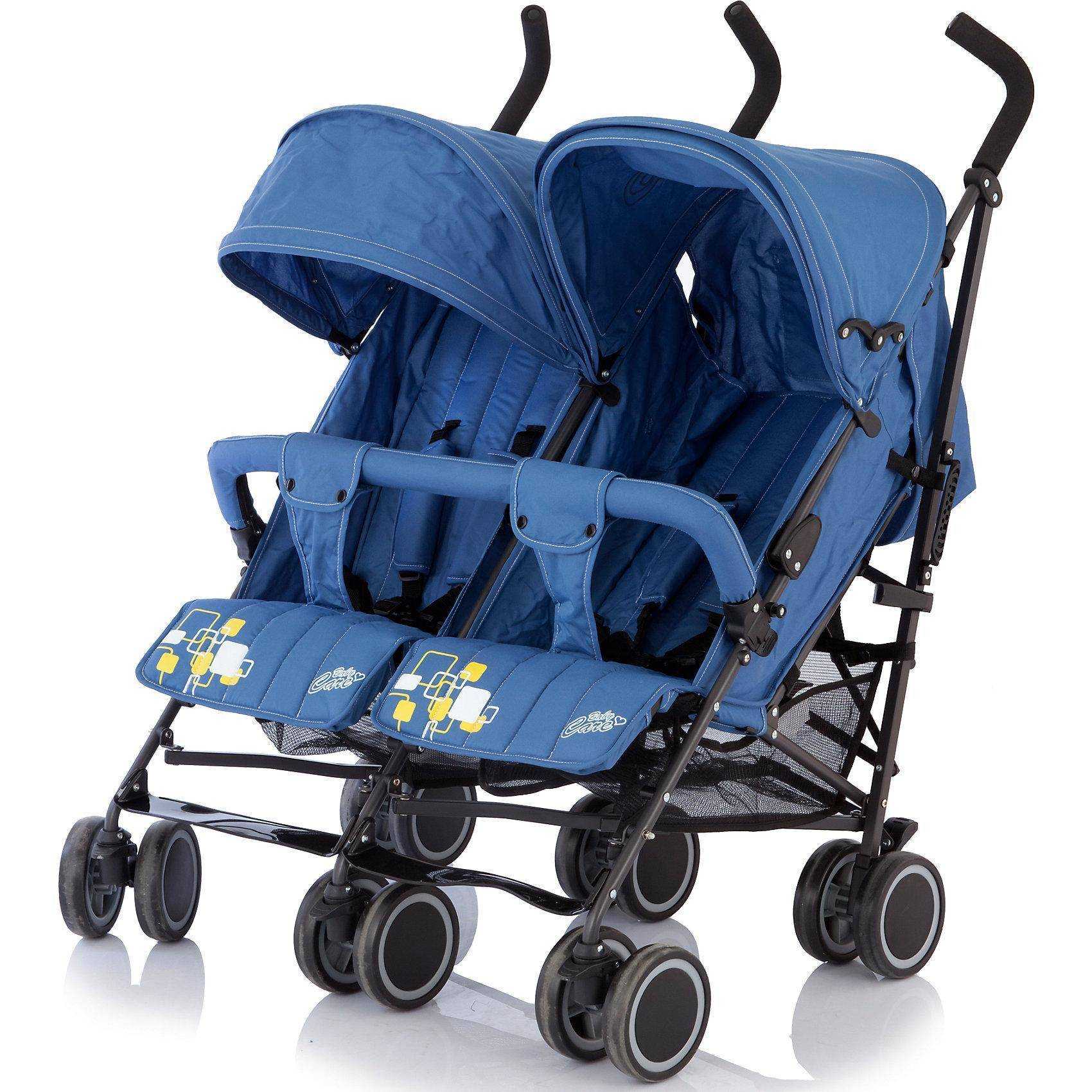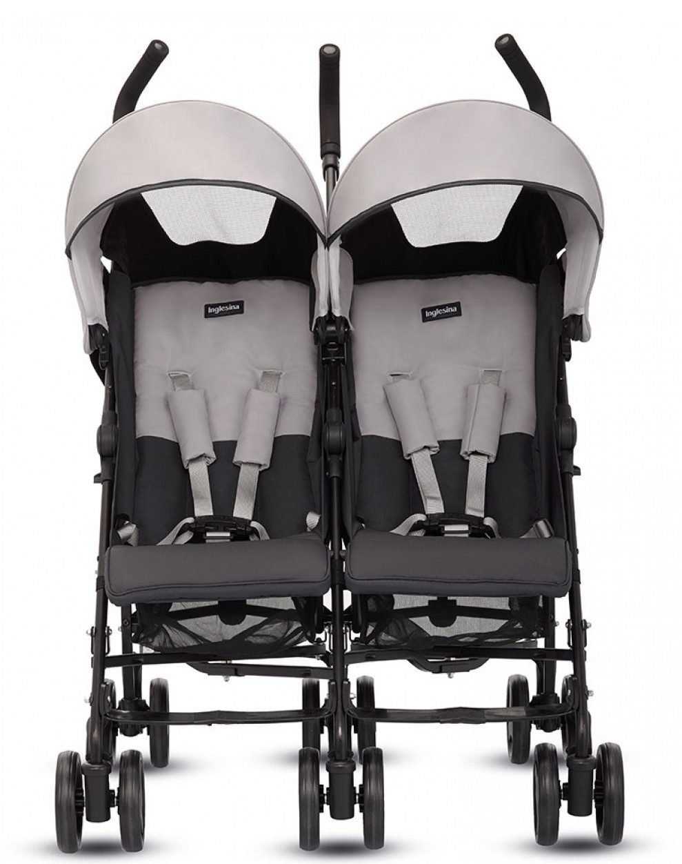 Удобная и надежная прогулочная коляска для двойни. Конструкция легкая, весит чуть больше 12 кг. Изделие можно использовать с первых дней жизни двойняшек до 3 лет. Совокупная грузоподъемность изделия составляет 30 кг. Коляска оснащена ремнями безопасности, удобным защитным капюшоном и раскладными спинками (4 положения). Ручки с нескользящим покрытием делают управление более удобным. Колеса сдвоенные, резиновые (задние — с тормозом). Ширина по колесам составляет 750 мм. Конструкция без проблем проходит в 800-миллиметровый дверной проем.