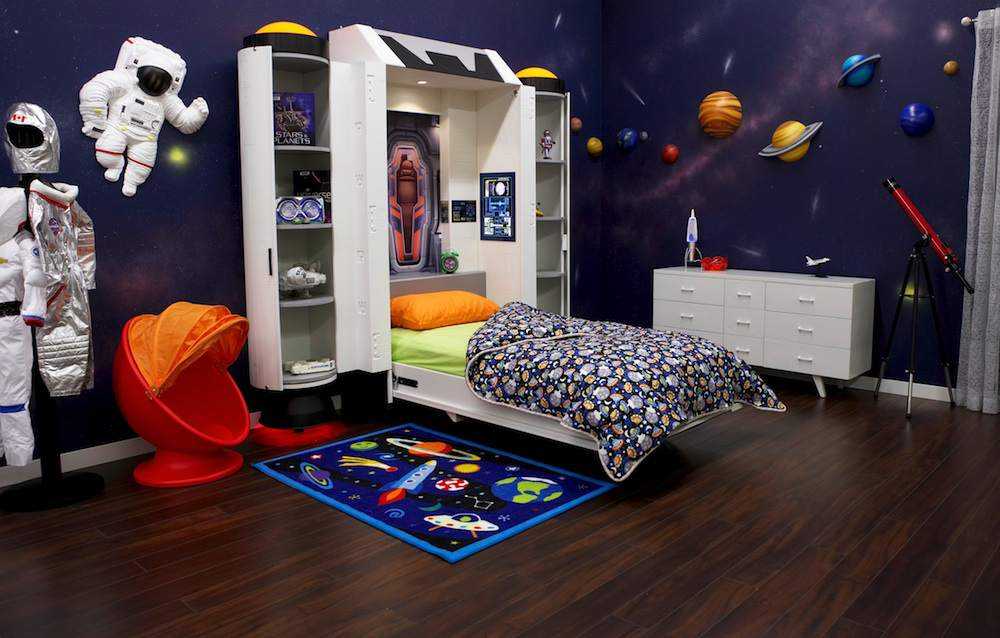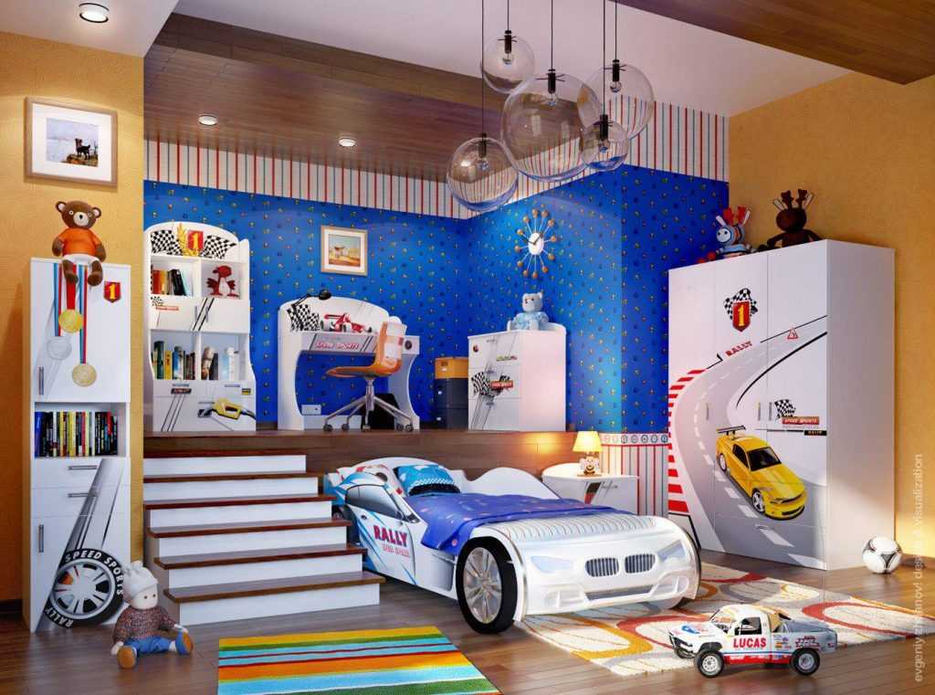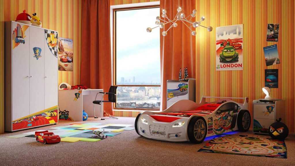 Такой дизайн очень популярен для мальчиков младших возрастов. Здесь фантазию можно не ограничивать. Тематика может быть абсолютно разной, например, космическая комната, комната пирата, морская тематика или комната авто. Такие комнаты очень яркие и весь декор оформляется под заданную тему.