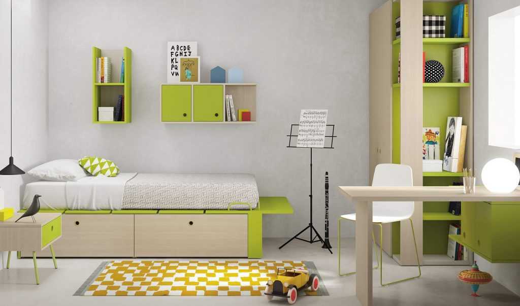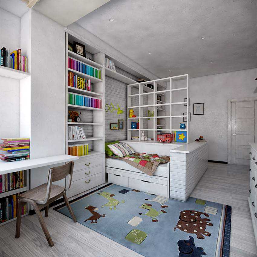 В просторном помещении меблировка не вызовет затруднений, но как сэкономить драгоценную площадь в малогабаритной детской? Выручит кровать-чердак либо кровать-подиум. Последняя ненамного выше стандартной модели, но имеет вместительные ящики для белья или личных вещей. Также в продаже имеются кровати-трансформеры с прочным механизмом, где еще одно спальное место прячется в выдвижной части.