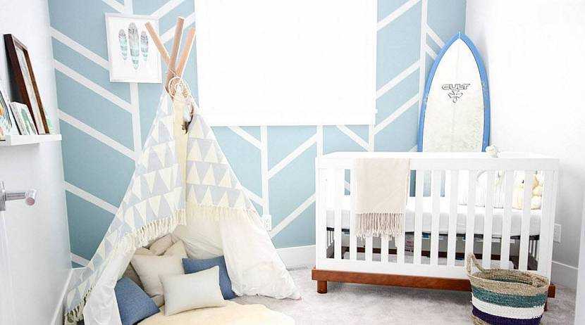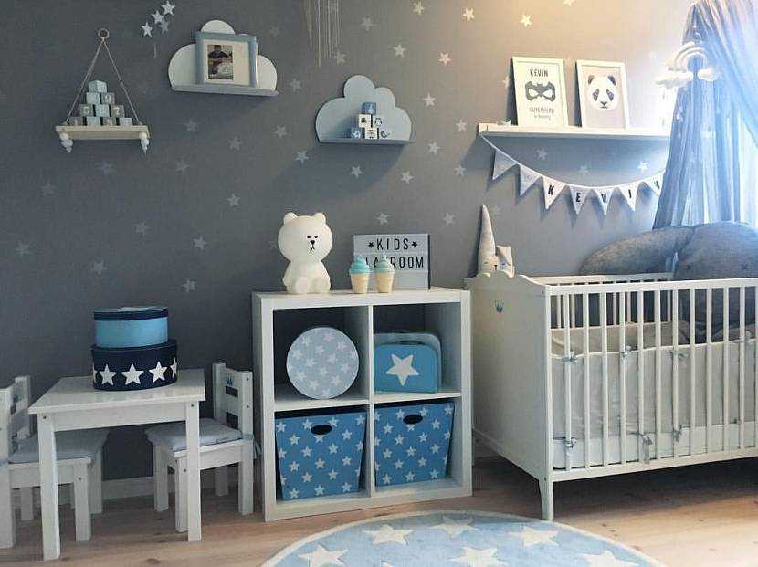 Комната для новорожденного мальчика в нежно-голубых тонах
