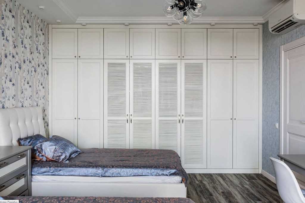 - Мебель и двери, выкрашенные в стандартные древесные оттенки, выглядят слишком однообразно, поэтому их разбавляют пастельными тонами.