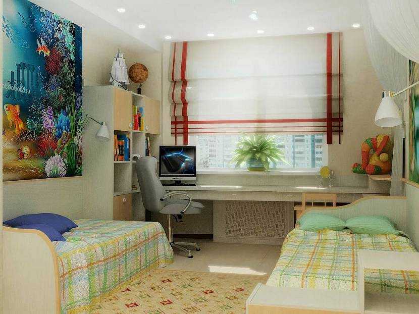 Детская комната 12 кв м для двух детейИсточник mebel-go.ru