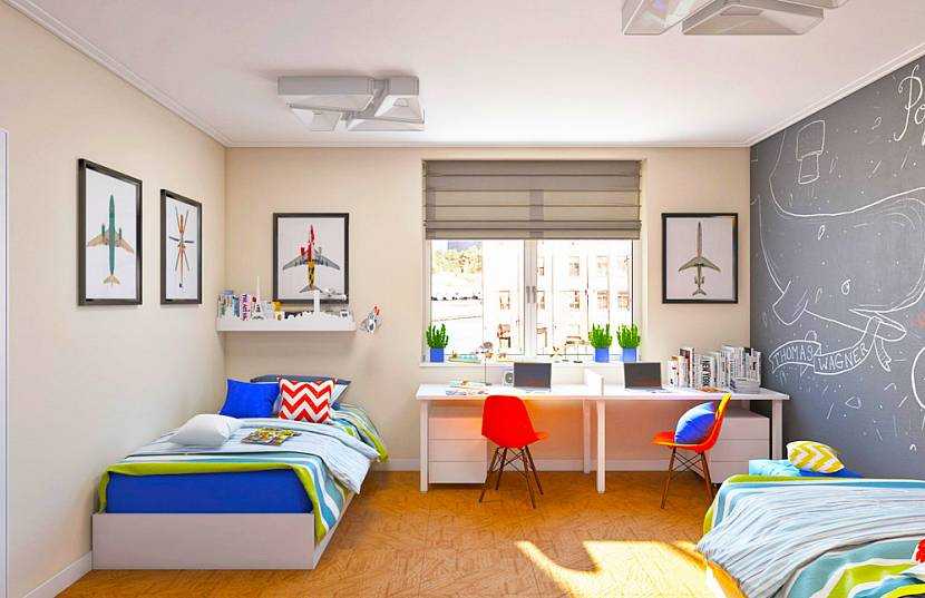 Дизайн комнаты для двух мальчиков нужно начать с выбора цветового оформления