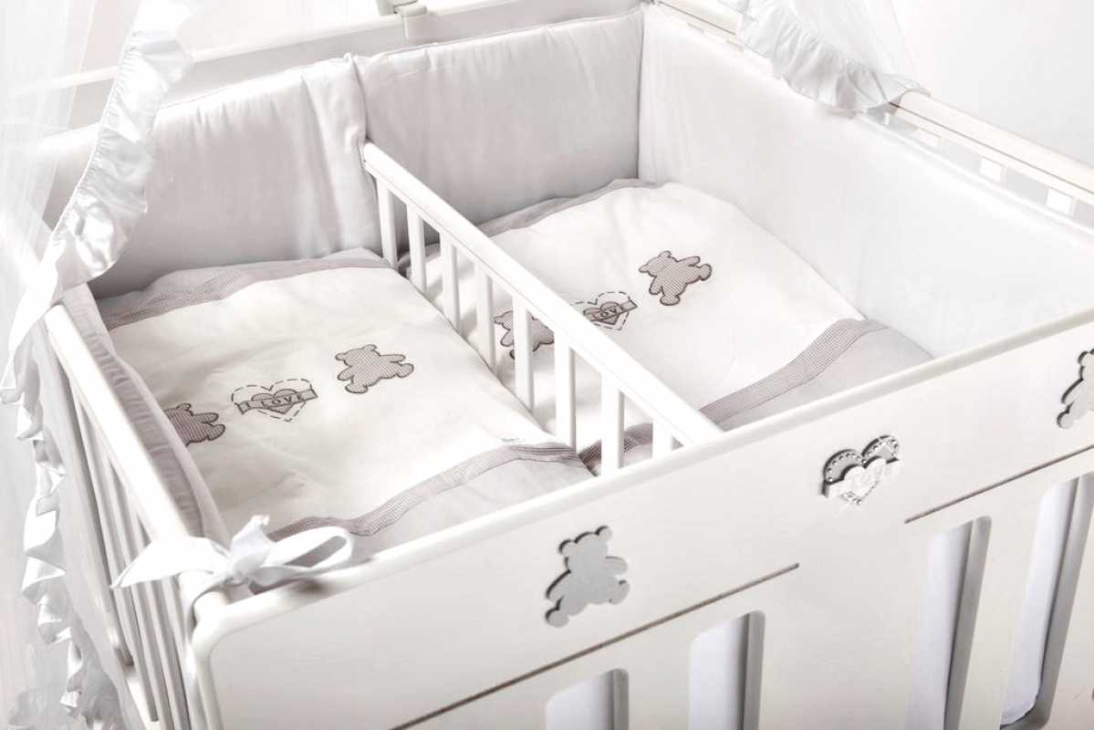 Некоторые производители предлагают в продажу модели сдвоенных кроваток. Смежные места разделены перегородками – реечными или поролоновыми. Следующий вариант – две небольшие кроватки. Главное преимущество отдельных стоящих кроваток для новорожденных – это возможность их передвигать в зависимости от ситуации. Идеальный вариант: один малыш со стороны, где спит мама, а второй – у другого родителя.