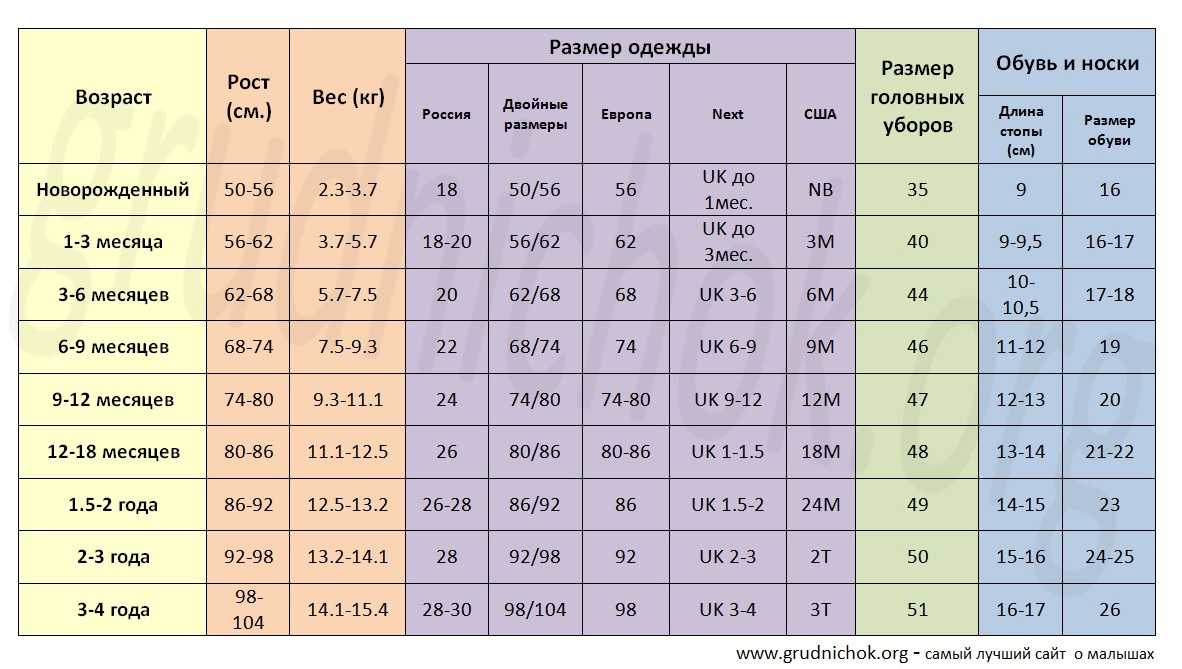Размер одежды выбирайте по таблице в зависимости от результатов последнего УЗИ. Как правило: