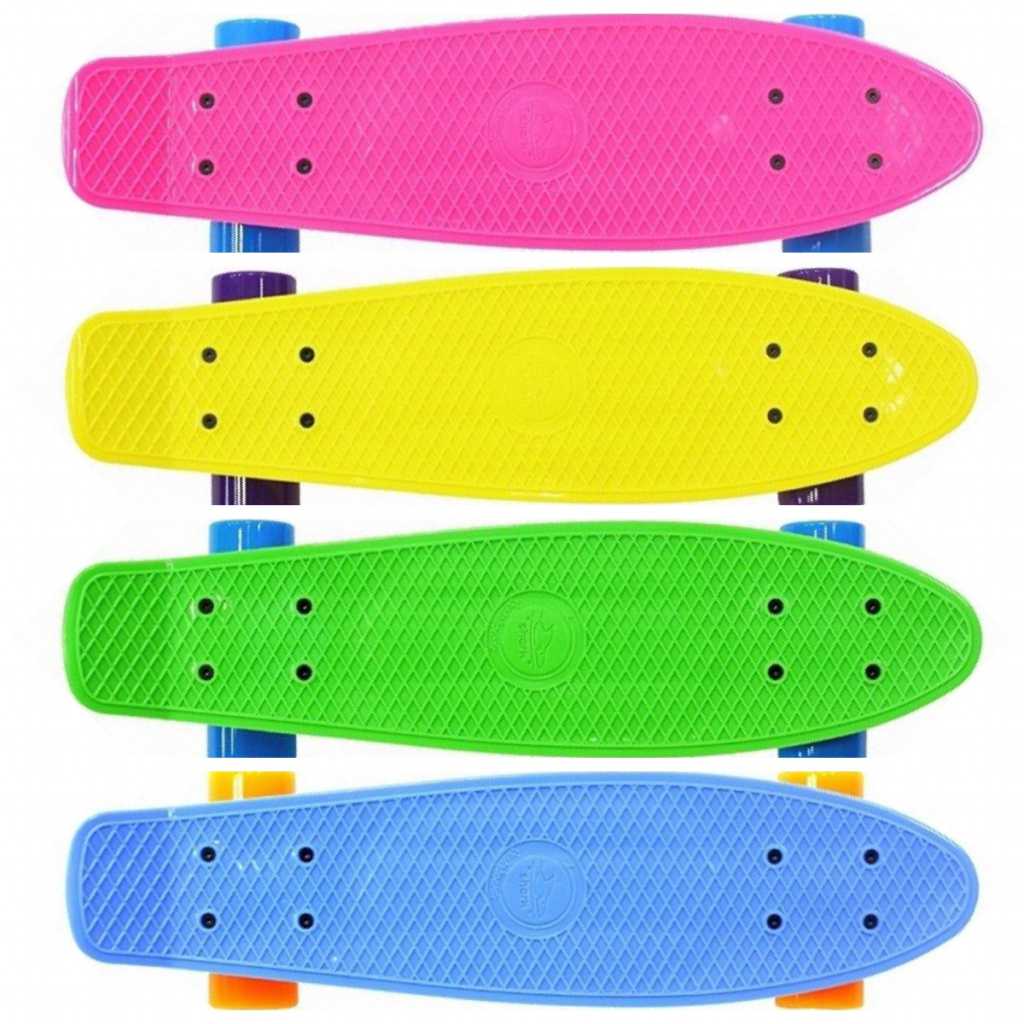 Следующая модель рейтинга представляет собой полипропиленовый пенни борд размером 22 дюйма. Такое изделие будет не только средством передвижения, но и модным аксессуаром. Оригинальные расцветки бросаются в глаза и вызывают удивление окружающих. Дека отличается высокой маневренностью и быстротой. Ее подвеска выполнена из алюминиевого сплава, который достаточно легок при транспортировке. Колеса диаметром 60 миллиметров и подшипники ABEC-7 обеспечивают моментальный разгон и долгое катание без вспомогательных отталкиваний.