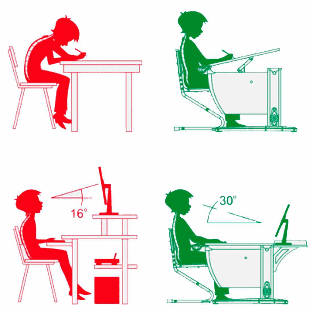 Для школьников младших класов важным моментом является использование наклона столешницы от 15 до 30 градусов