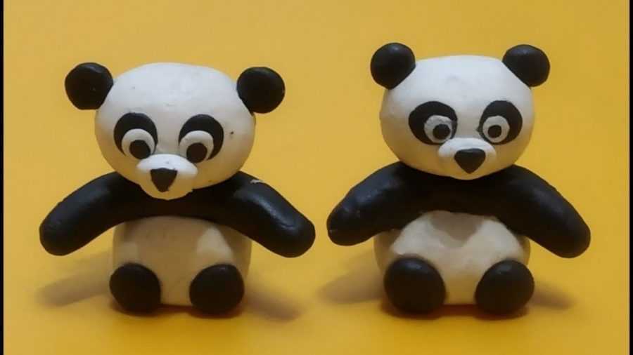 Нос и щеки выделываются из маленького по размеру шарика. Их надо сплющить и приделать сверху. Для тела используем другой шарик. Раскатанный в жгут пластилин идет на лапки. Детали соединяются вместе.