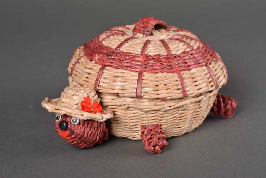 При плетении бумажные трубочки напоминают ивовую лозу. Они достаточно гибкие, прочные, податливые в работе и могут принимать любую форму. Создание стандартной ёмкости начинается со дна и делается согласно такой последовательности: