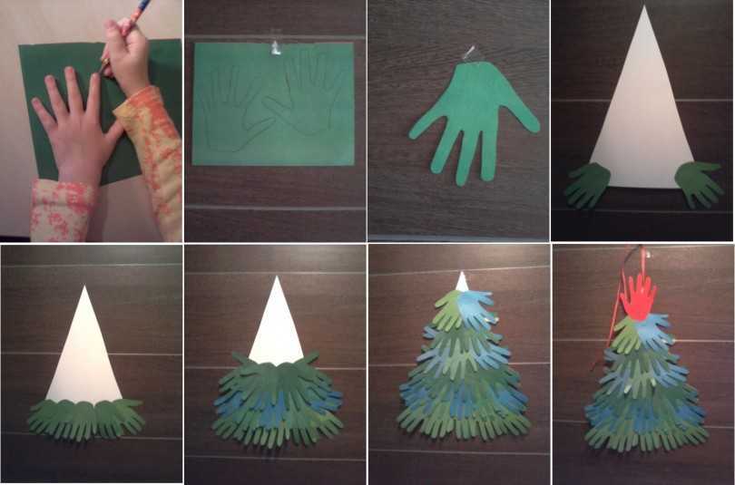 Ребята по-младше при помощи папы, мамы или воспитателя собирают цветную бумагу «гармошкой» и вырезают на ней мелкие прорези. После чего раскрывают заготовку и соединяют оконечности ярко-золотой звездой.