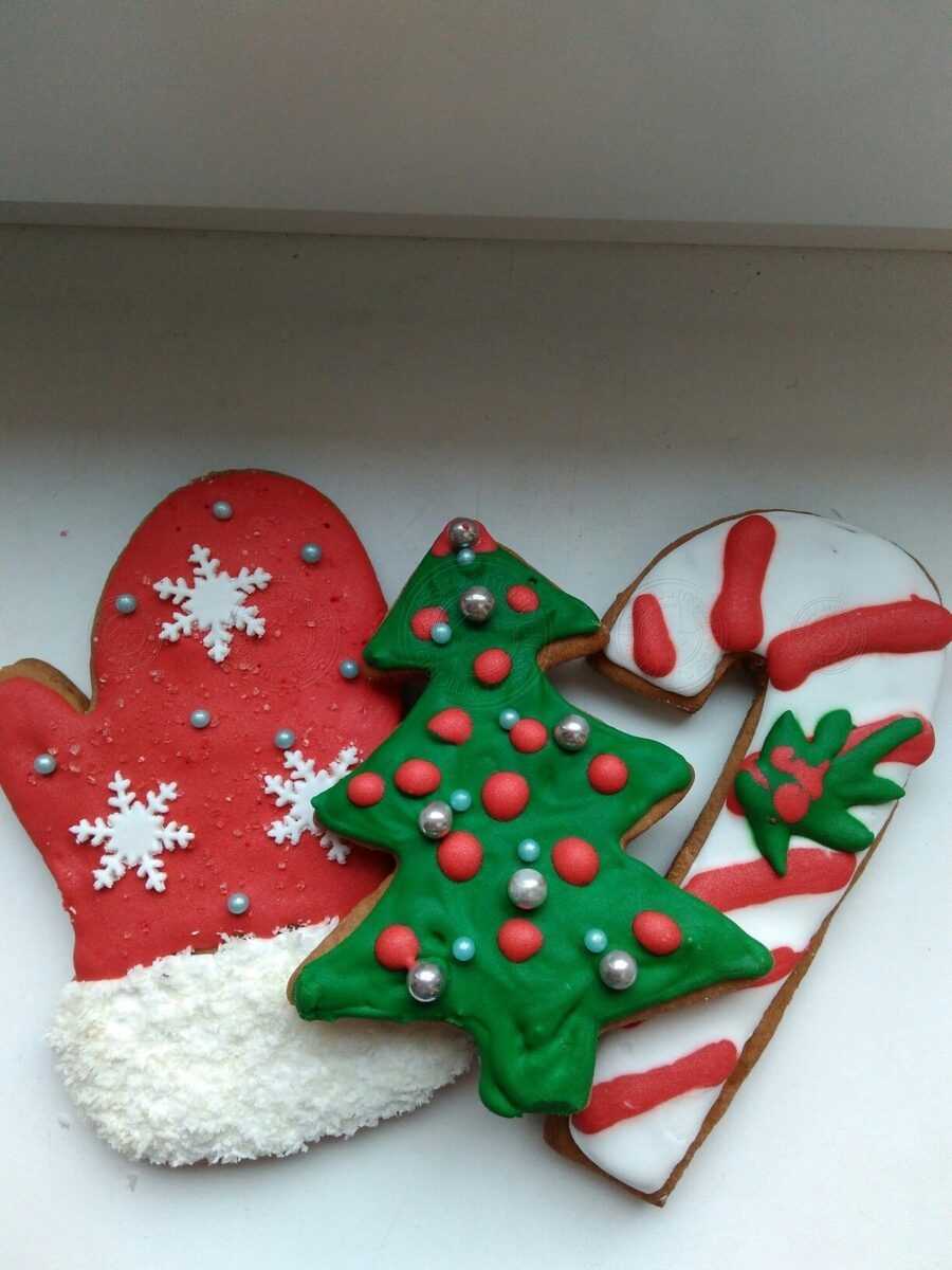 Соединив стакан соли, муки и воду, хозяйки выпекают звёздочки, сердечки, зверушек, расписывая фигурки гуашью. Расписные пряники, развешанные над подоконником на фоне разрисованных стёкол, свечей и забавных персонажей, заставят улыбнуться прохожих. Очаровательный образец – слепок ладошки ребёнка, где большой пальчик потом будет красной шапочкой Деда Мороза, а снизу рисуется его добродушное лицо.