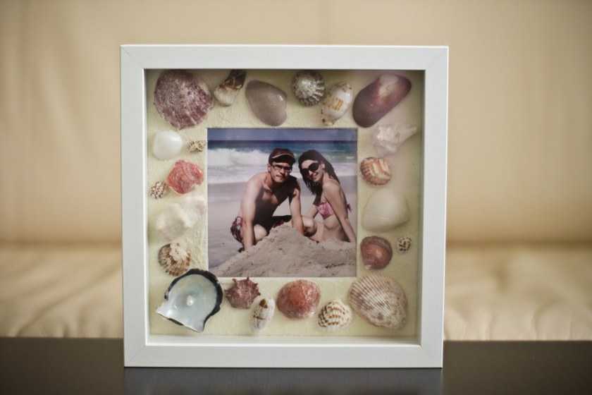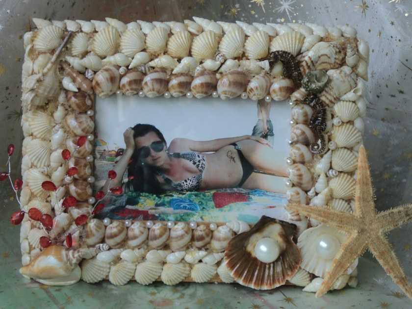 Второй по популярности после камней сувенир с моря – ракушки. В курортных городах повсеместно продаются рамки для фотографий, украшенные дарами моря. Так зачем же покупать готовое изделие, если его можно сделать самостоятельно по приезду домой. К тому же привезенные презенты пойдут на благое дело, а не будут занимать место в доме.