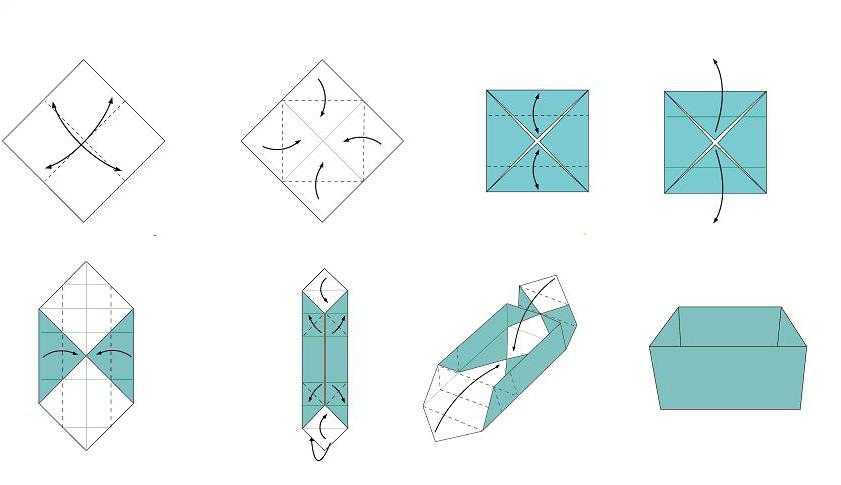 - Квадраты с каждой стороны необходимо согнуть по линии сгиба.
