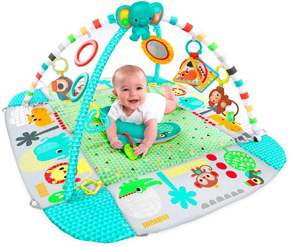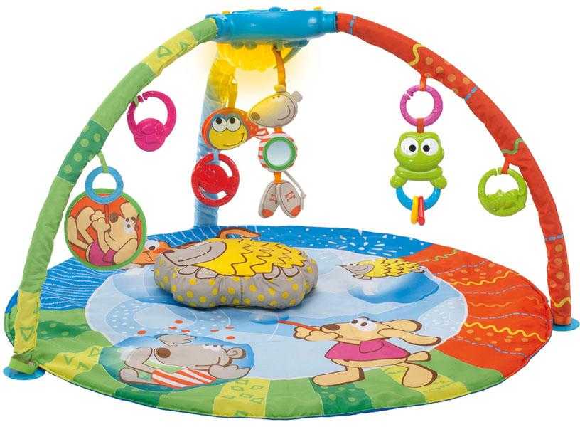 Универсальный коврик с регулируемыми дугами, оснащен диктофоном со световыми и звуковыми эффектами. Подходит ребенку с рождения. Развивает мелкую моторику, органы чувств, учит находить причинно-следственные связи. Стоит от 4648 рублей.