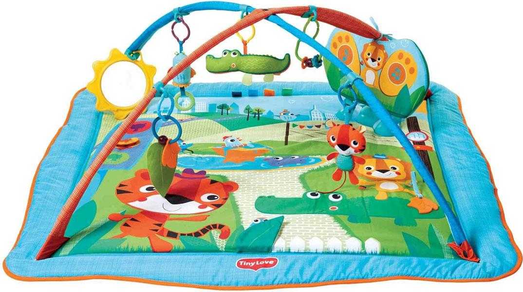 Детский бренд Tiny Love предлагает качественные и полезные для детей развивающие коврики. В комплекте поставляется много разноцветных игрушек с музыкальным блоком, что в целом выглядит, как игровой центр для малышей.