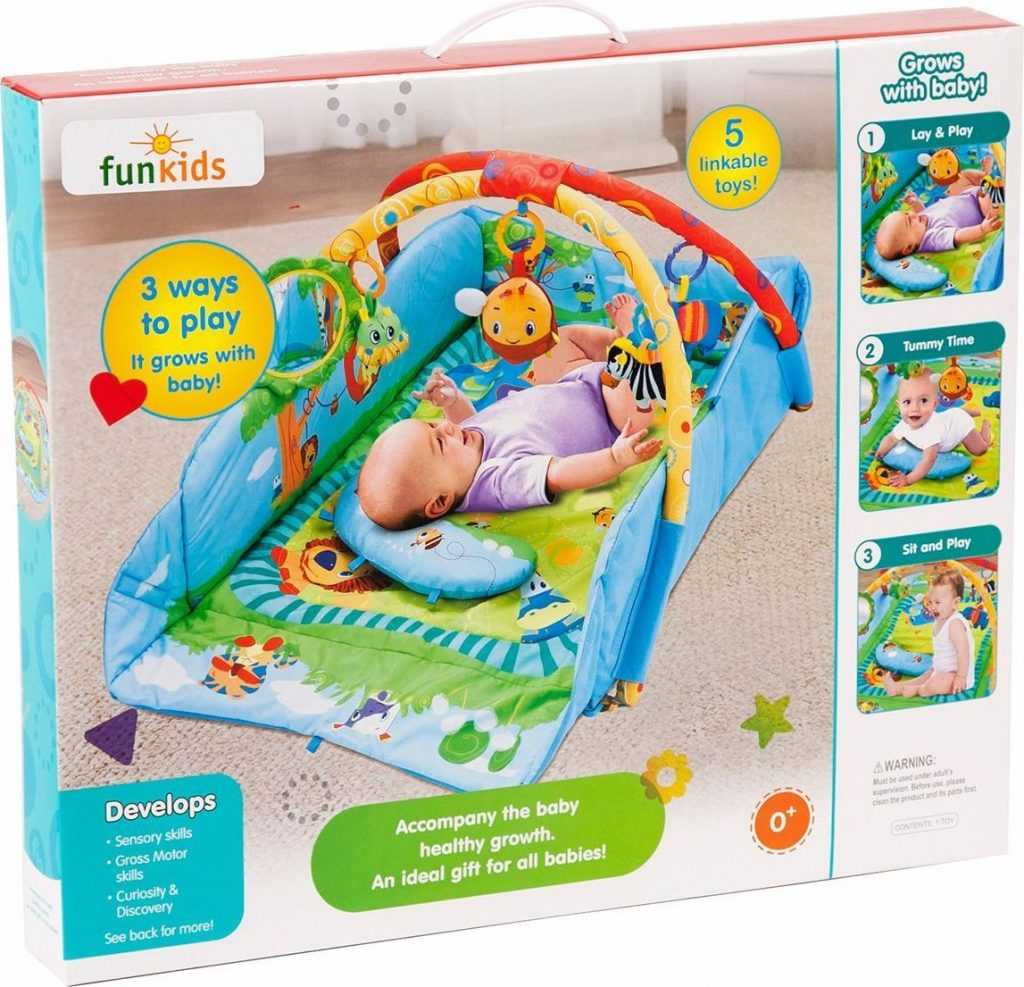 Идеальный вариант для новорожденных и малышей с первых месяцев жизни. В комплект входят погремушки, шуршащие элементы и симпатичные мягкие игрушки. В процессе игры грудничок учится держать голову, смотреть вверх, а затем и ползать. Развивается мелкая моторика, хватательный рефлекс, улучшается координация движений. Высокие съемные бортики создают подобие манежа. В комплекте имеется зеркало из безопасного материала.