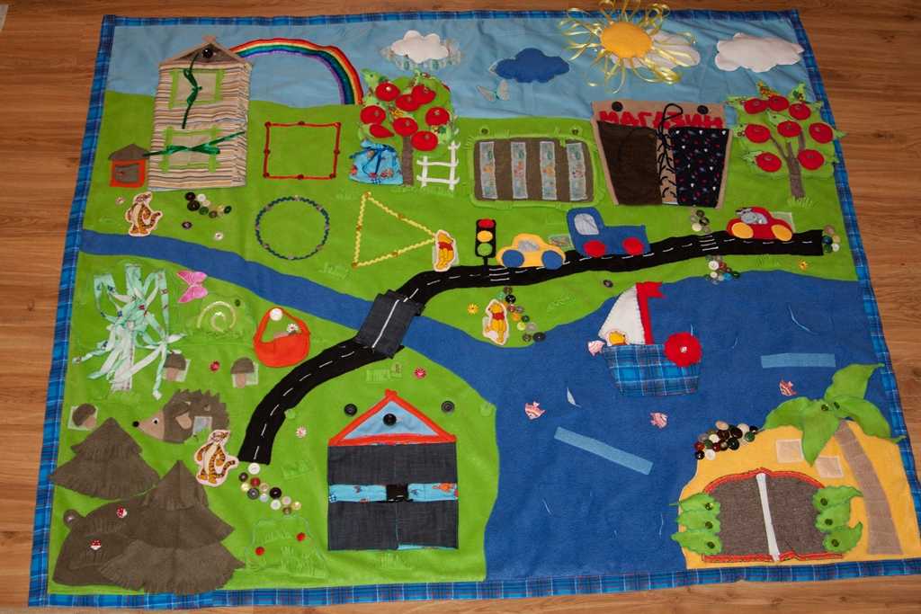 Детский коврик – это своеобразное первое дидактическое пособие для малышей и родителей. При разработке такого изделия, главной идеей являлось размещение на красочном и ярком полотне разного размера всевозможных развивающих элементов: тканей разных фактур и цветов, музыкальных деталей, , грызунков и т.д.
