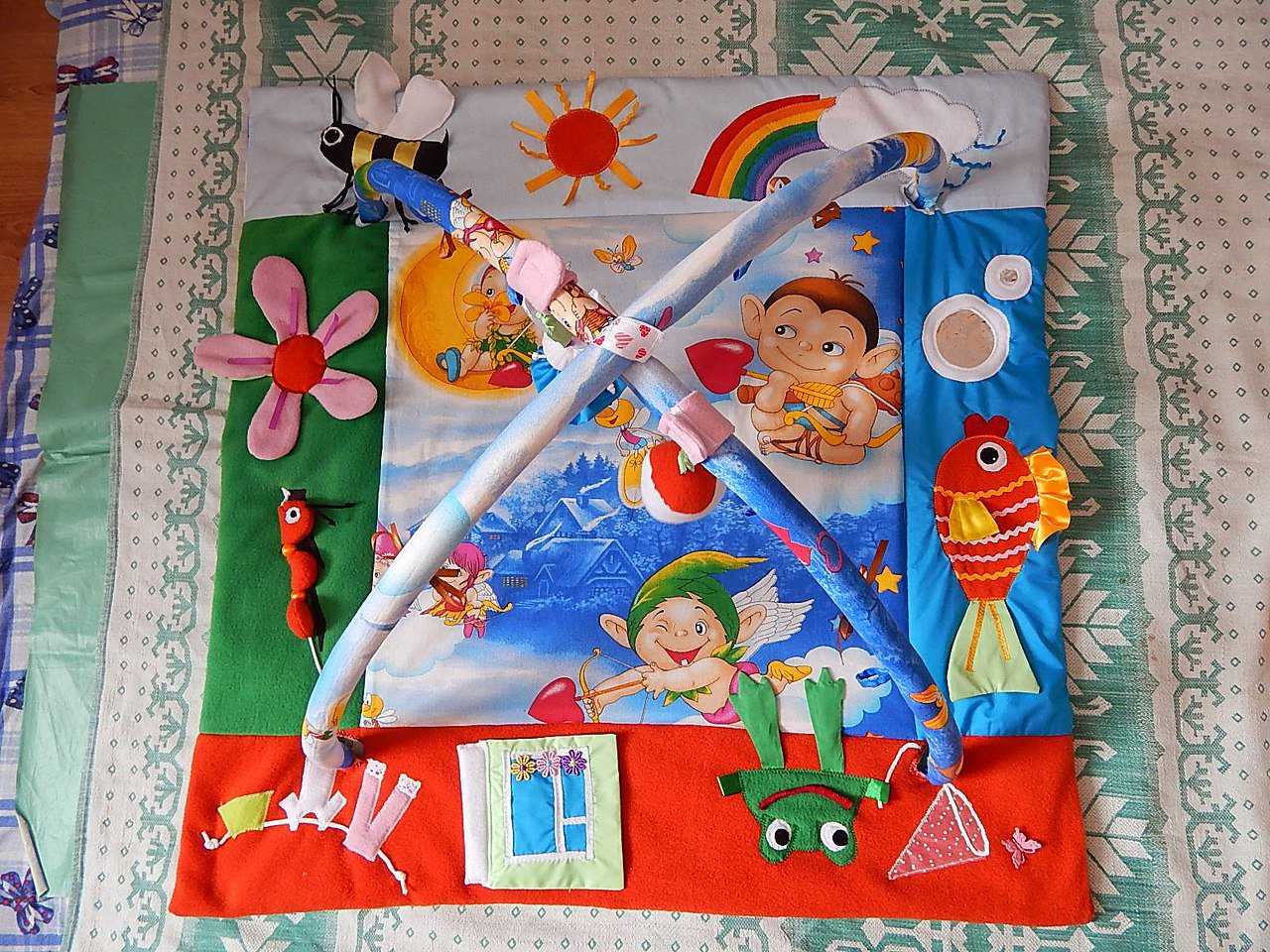 Возрастные особенности ребенка. Не стоит шить младенцу переполненное музыкальными и электронными элементами полотно, а также делать коврики-паззлы. Малыши такого возраста только начинают свое знакомство с окружающей средой и не способны логически думать и устанавливать причинно-следственные связи.