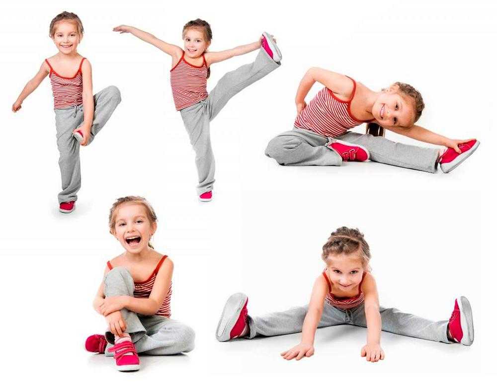 Все занятия начинаются с разминки. Дети должны походить на носочках, подвигать руками в разные стороны, выполнить потягивания и наклоны, хорошенько разогреть мышцы. Для разгрузки позвоночника полезно подвигаться на четвереньках: малышей можно попросить изобразить животных, например, кошку или собаку. После разминки можно приступать к основному комплексу.