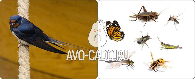 Ласточки питаются насекомыми, которых ловят в полете. Это мухи, стрекозы, жуки, бабочки.