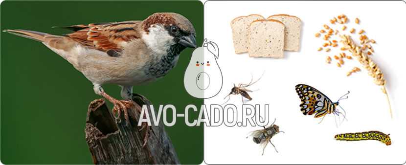 Воробьи питаются в основном растительной пищей, иногда мелкими насекомыми. В условиях жизни вблизи человека, воробьи приспособились питаться остатками еды и отбросами.