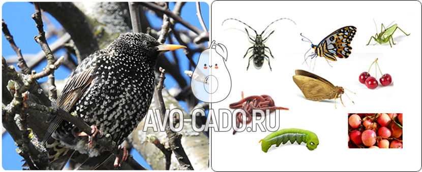 Скворцы — всеядные птицы. Питаются дождевыми червями, жуками, бабочками, кузнечиками, личинками. Из растительной пищи предпочитают ягоды, яблоки, груши, семена.