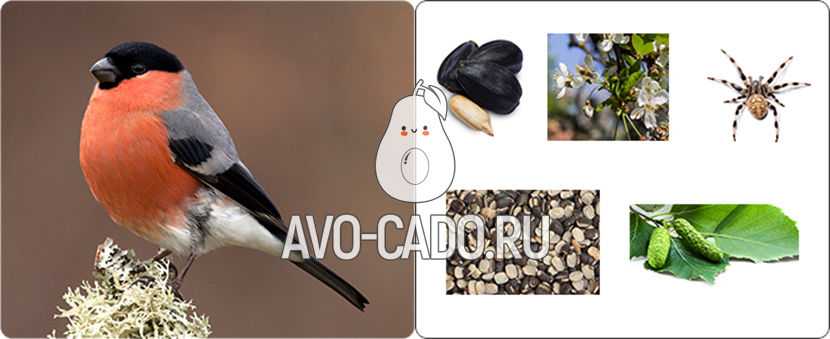 Весной и летом снегири питаются почками деревьев, семенами, пауками. Зимой часто поедают ягоды рябины.