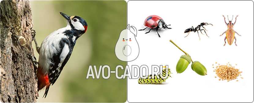 Питаются дятлы в основном насекомыми. Они уничтожают множество вредителей — тлю, гусениц, жуков-короедов. Осенью и зимой дятлы едят растительную пищу — семена сосны и ели, плоды, орехи, желуди.