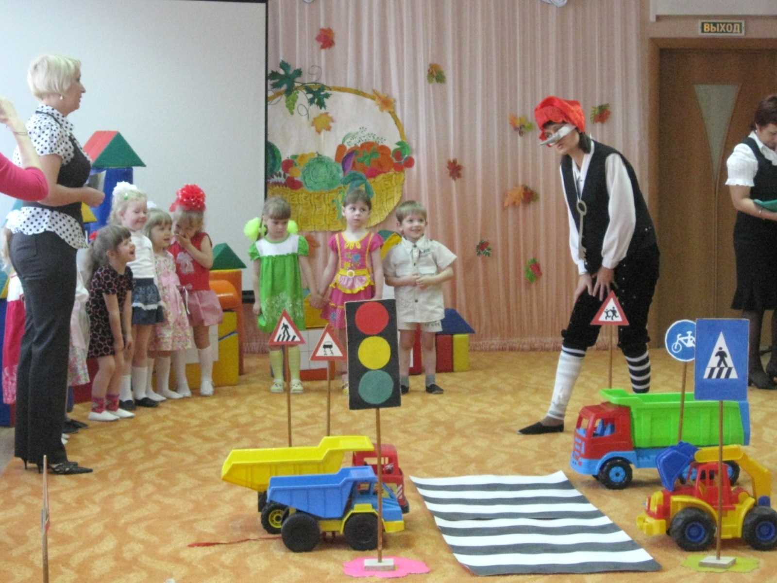 В детском саду можно организовать сценку, в которой железный светофор приходит в гости к дошкольникам и рассказывает об основных правилах. Сами дети могут принимать участие в сценках, изображая определенные ситуации.