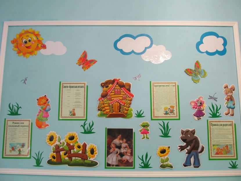 Разукрашивая стенд, учитывайте, что маленькие дети любят все красочное. Используйте в дизайне яркие цвета и большое количество рисунков, малыши еще не умеют читать. Советуем приклеить изображения любимых детских персонажей, это привлечет к стенду еще больше внимания. Перед началом работы продумайте, какие рубрики будут представлены на стенде. К примеру, можно сделать рубрику «Наше творчество» и размещать там лучшие рисунки. Вариантов множество, если у Вас есть фантазия.