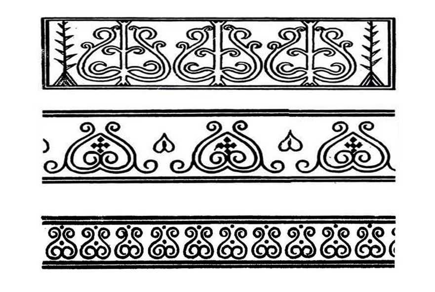 Есть четыре основные группы узоров: растительный, геометрический, зооморфный и антропоморфный.