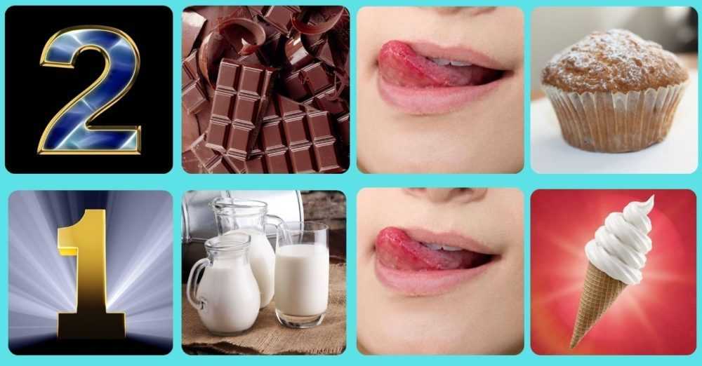 Например, на первой карточке изображена цифра 2, на второй – шоколадная плитка, на третьей – облизывающий губы язык как символ сладости, на четвертой – кекс