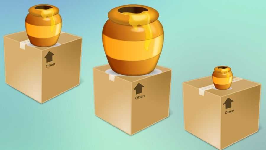 Для игры подготовьте 3 коробки, в каждую поместите изображение горшочка с медом разной величины. Раздайте игрокам по 3 горшочка соответствующих размеров.