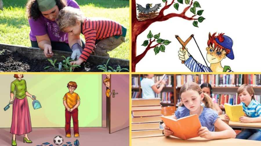 Распечатайте для игры картинки с сюжетами положительного и отрицательного характера. Пусть воспитанники рассмотрят изображения, оценят поступки персонажей. Например: «Мальчик дернул девочку за косичку. Девочка заплакала. Он поступил плохо».
