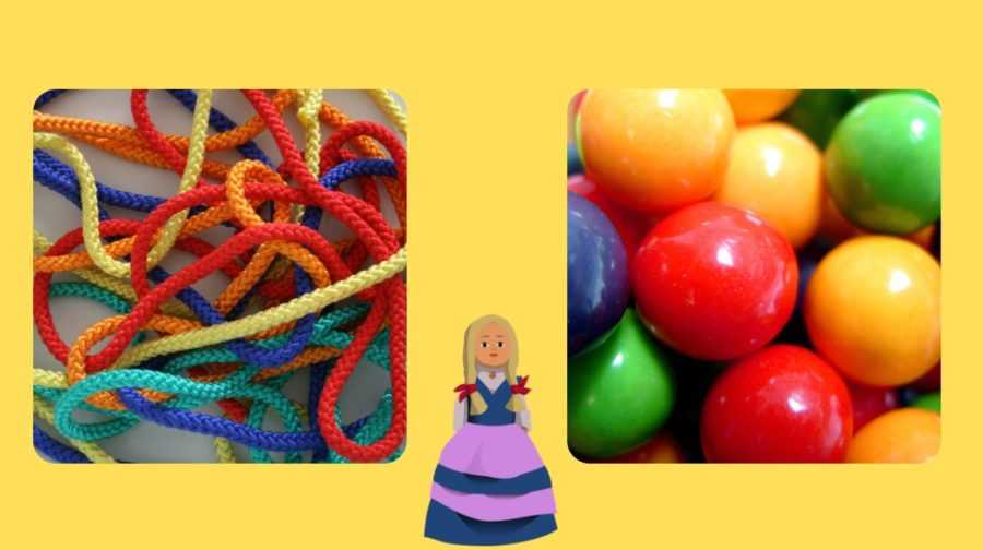 Расскажите воспитанникам, что куклы собрались на именины, но им нечем себя украсить. Предложите сделать бусы, покажите детям шнурки и коробку с разноцветными бусинами. Задача – выбрать из коробки бусины определенного цвета, нацепить их на шнурок аналогичного колера.