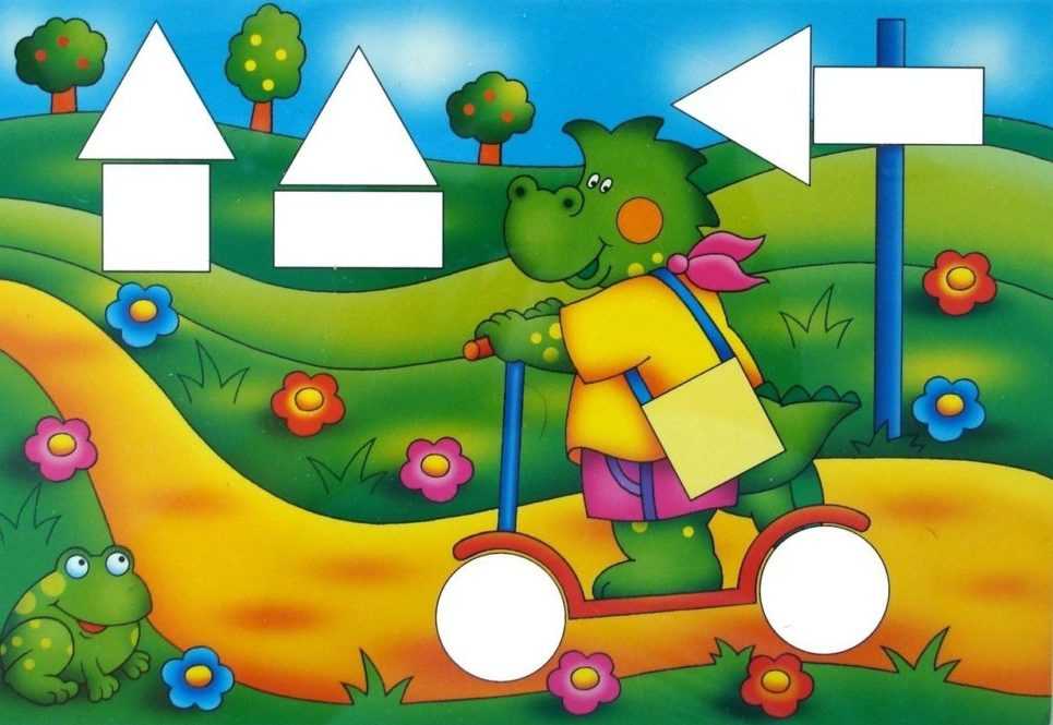 Для игры распечатайте геометрические картинки. Показывайте ребенку фигуры вразнобой, а он должен назвать объект соответствующей формы. Например, увидев круг, воспитанник может назвать следующие предметы: яблоко, мяч, апельсин, колесо, солнце.
