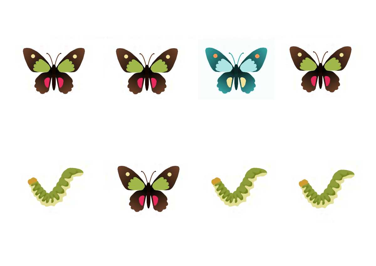 — Посмотрите на картинку и покажите бабочку, не такую как другие, отличающуюся от других бабочек.